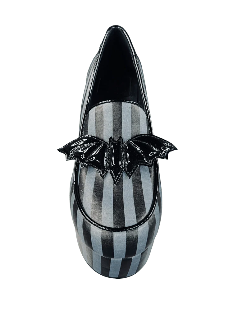 Bat! Liven up the office or just everyday wear with this striped vegan leather upper heel. The platform height is 2 1/4 inches, with a heel height of 4 and 1/4 inches.