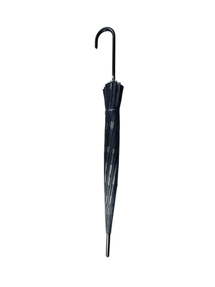 Brighten rainy days with the MARCELINE BAT PARASOL in black and grey! Its durable nylon upper keeps you dry, while the sleek black enamel metal handle adds a touch of edgy style. The vegan leather U-shaped handle offers comfortable grip, making this parasol as fun to hold as it is to show off. Stay dry and make a statement—rain or shine!