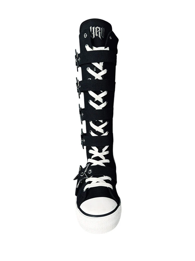Step out in style with RAWR XD STARS in black and silver. The canvas upper and chrome star buckles add edgy flair. Plus, the inner zipper and lace closure provide a secure fit while the rubber toe cap and outsole offer durability. Make a statement in these unique kicks!